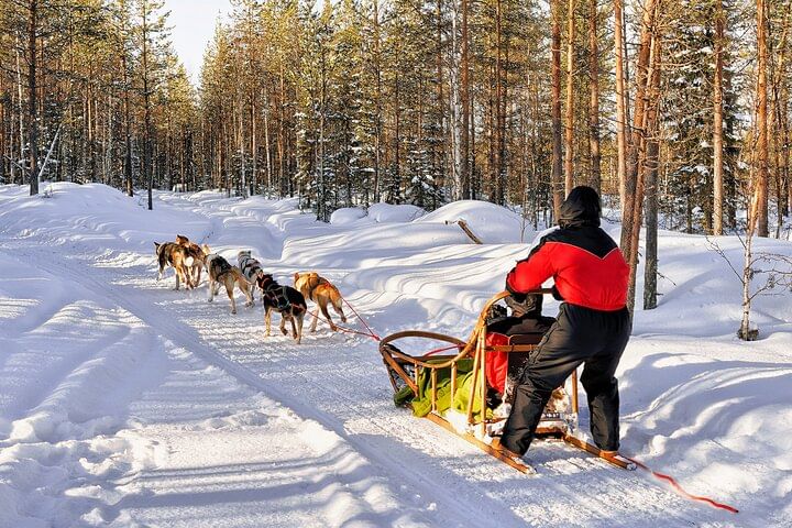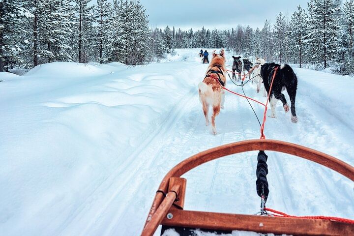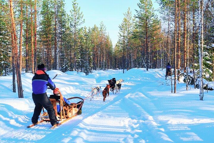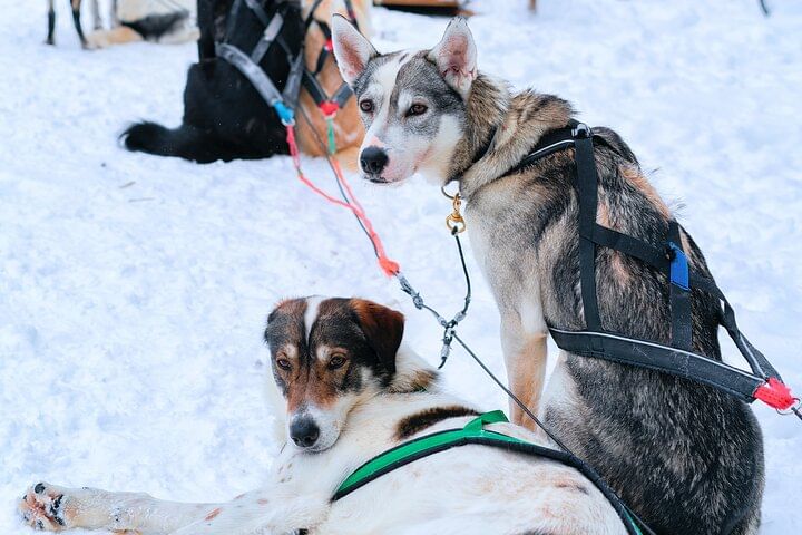Experience the thrill of a Husky sleigh ride across Lapland’s snowy landscapes! Begin with a scenic drive from your accommodation to the husky farm, where professional mushers will introduce you to their loyal dogs and share insights into life in the Arctic.