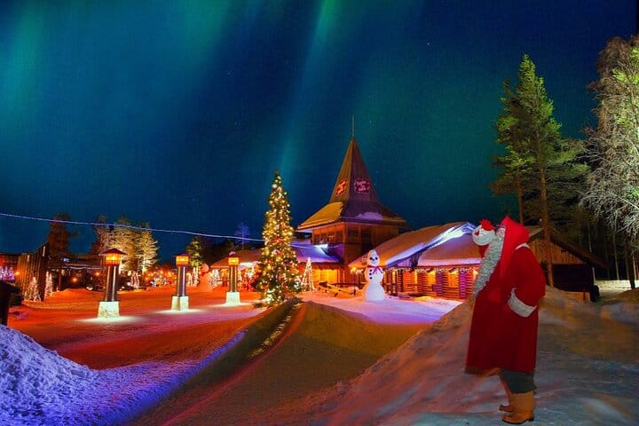 Then, head to the charming Santa Claus Village, where you can explore at your own pace — cross the Arctic Circle, enjoy the festive atmosphere, and meet Santa himself.