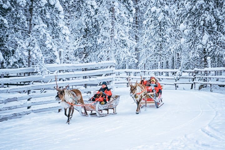 Enjoy a peaceful 500-meter reindeer sleigh ride through the snowy forest, gliding quietly through the Arctic landscape. After the ride, warm up at the farm with hot berry juice and fresh cookies in a cozy setting.