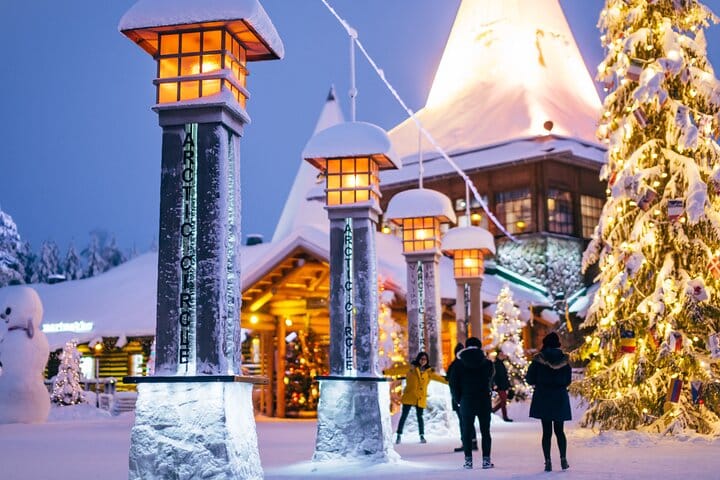Step into a winter wonderland with a magical 4-hour visit to Santa Claus Village in Rovaniemi, right on the edge of the Arctic Circle. Perfect for families, couples, and Christmas lovers, this festive experience combines holiday charm with Arctic beauty.