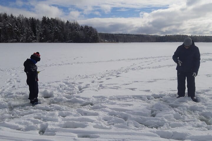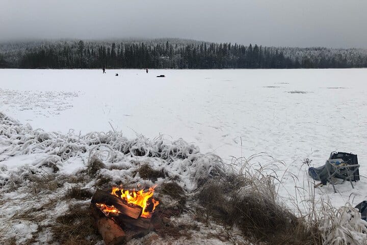 Guide will be by your side throughout the adventure and assists you with any needs and help you warm up if you feel chilly. As you enjoy your ice fishing experience, your guide will be busy chopping wood and setting up a cozy fire on the shore. Gather around the fire to indulge in some Finnish campfire snacks and warm drinks, creating the perfect setting for your guide to share insights about Arctic life and Lapland's unique culture.